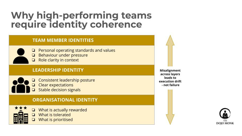 High-performing teams don’t fail because of misalignment. They drift because of identity fragmentation.